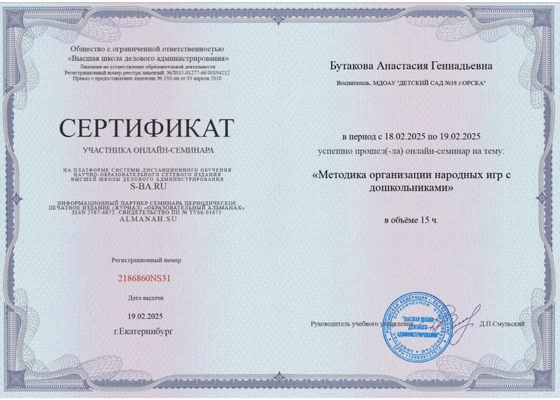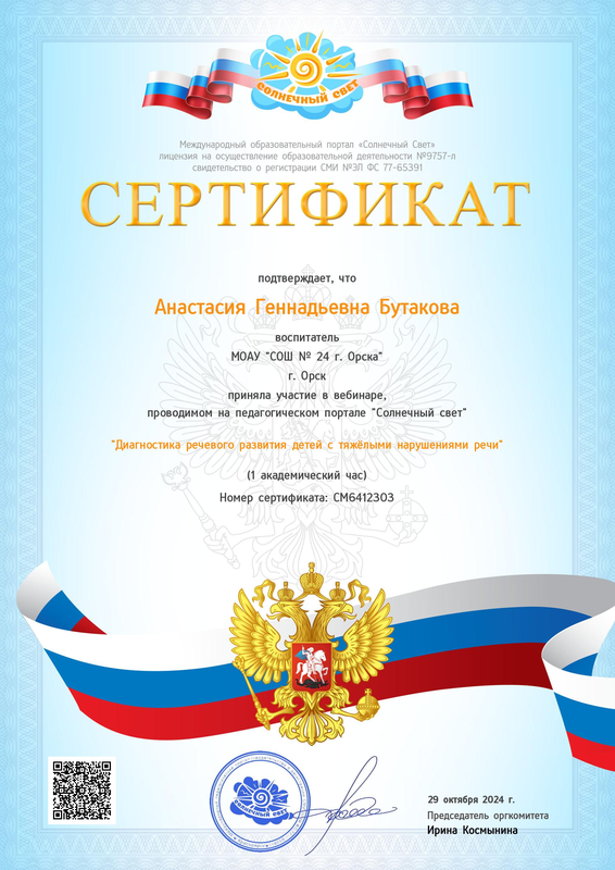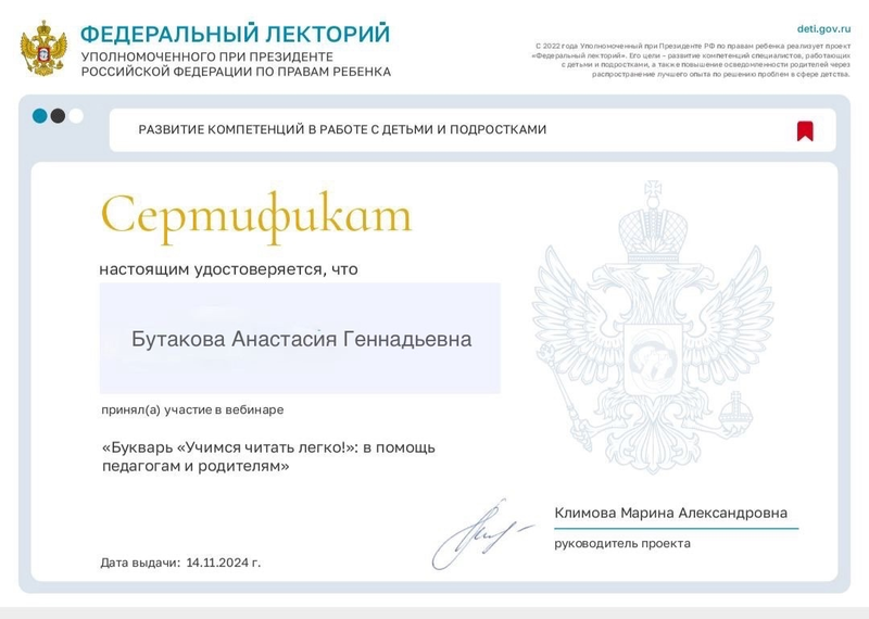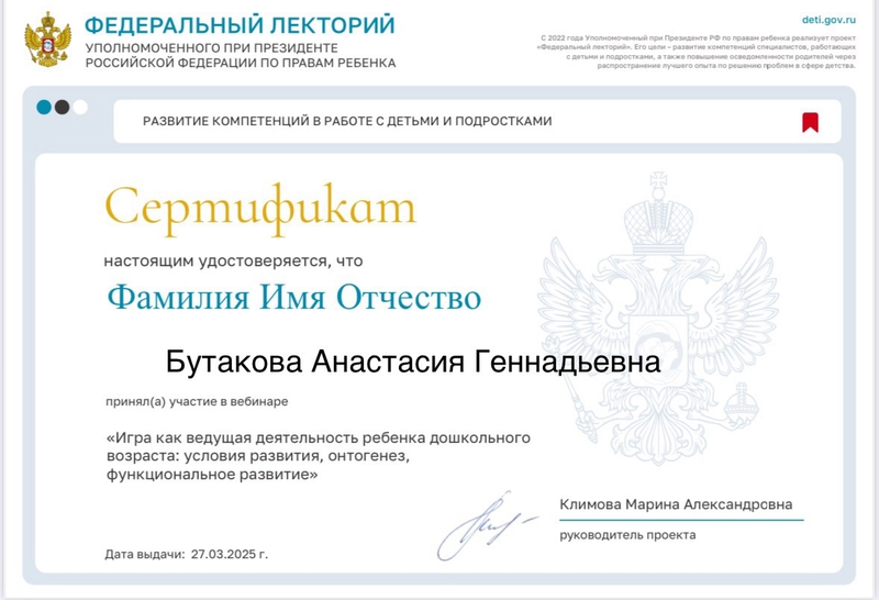 Портфолио воспитателя Бутаковой Анастасии Геннадьевны
